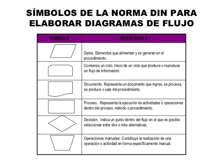 El Instituto Alemán de Normalización –DIN por sus siglas en inglés- es el organismo nacional de normalización de Alemania. Elabora, en cooperación con el comercio, la industria, la ciencia, los consumidores e instituciones públicas, estándares técnicos (normas) para la racionalización y el aseguramiento de la calidad. El DIN establece otro tipo de simbología necesaria para diseñar un diagrama de flujo, igualmente enfocado al tema de calidad